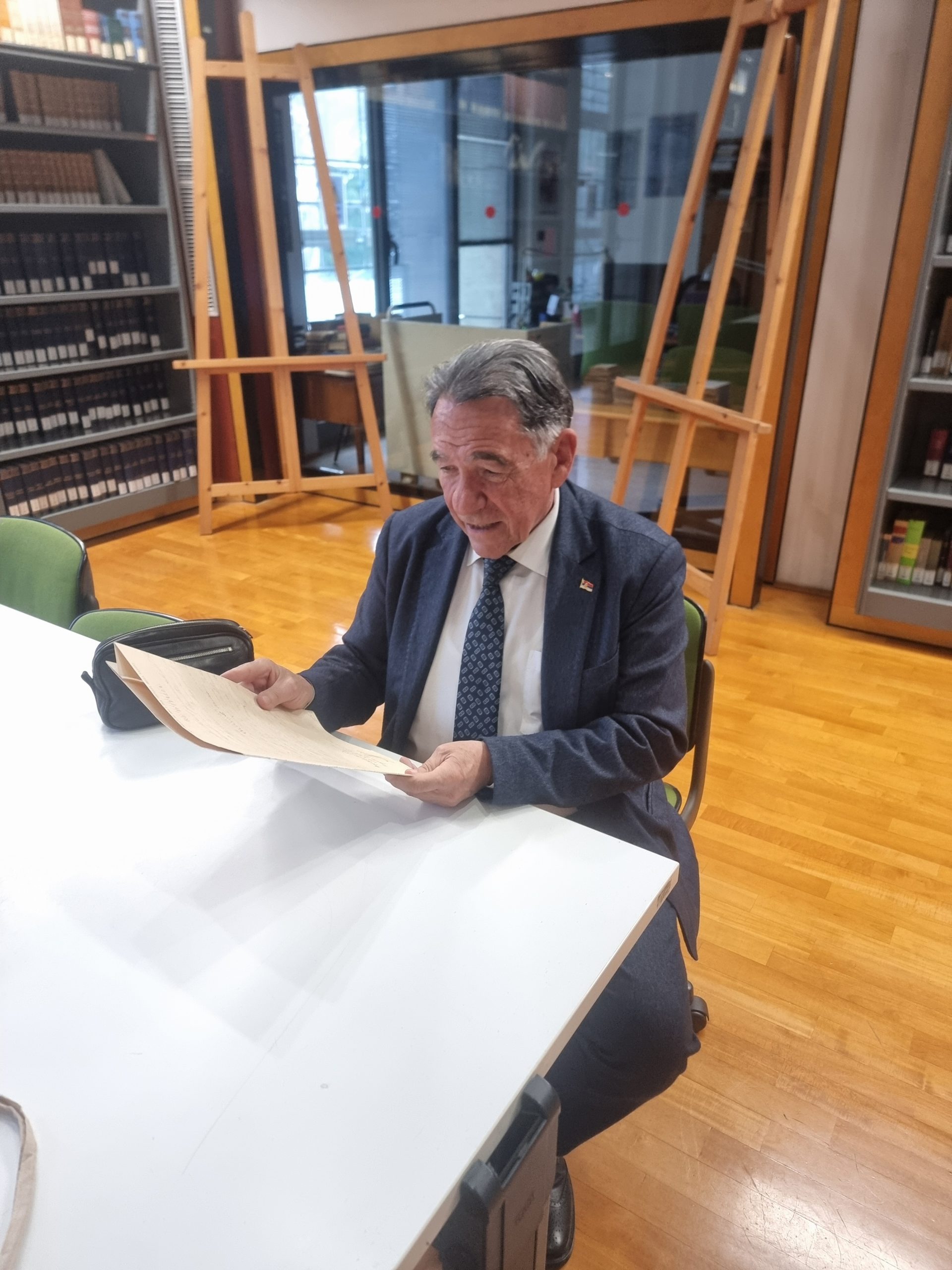 In missione in Italia da cinque anni, l’ambasciatore è stata accolto in Istituto dalla dott.ssa Maria Letizia Sagù, Responsabile delegato ACS dalla DGA, insieme al dott. Antonio Frate, referente per le delegazioni diplomatiche straniere nell’ambito del Servizio Educazione e Didattica. L’incontro è cominciato presso lo Scrigno della Memoria, dove l’Ambasciatore, Professore Emerito di Diritto, si è soffermato ad ammirare cimeli e documenti custoditi nella mostra permanente, in particolare la copia della Costituzione della Repubblica italiana. In Biblioteca sono stati consultati i seguenti documenti:
